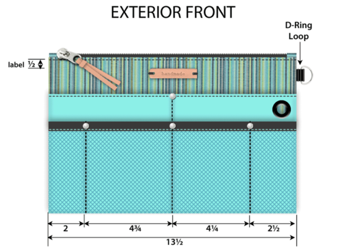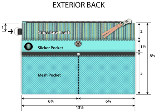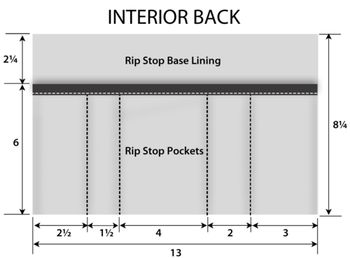 - The illustrations below help you see our division lines, but bear in mind that it shows the finished width with the ½” side seams in place. You can follow our division points or create your own custom pocket divisions.