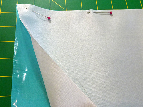 - Place a rip stop panel right sides together with each fused laminate panel. Pin or clip along the upper edge only.