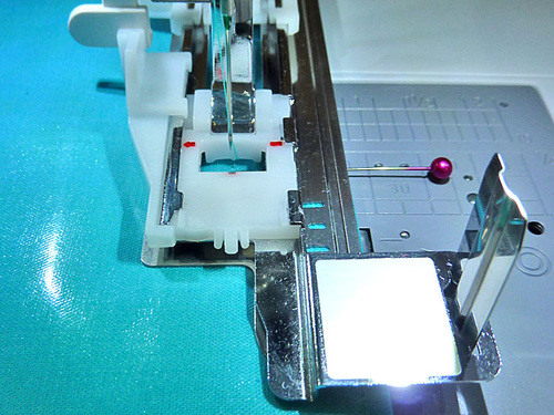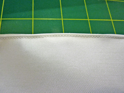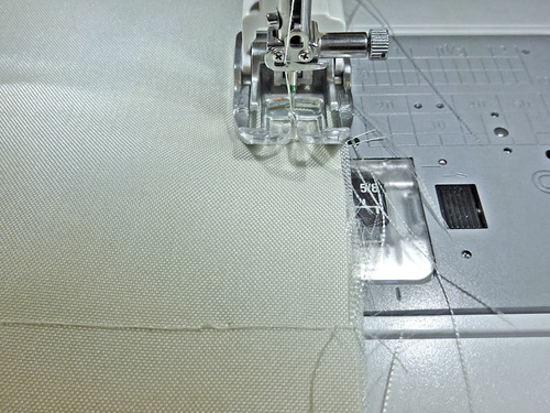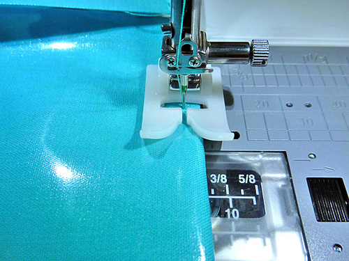 - If necessary, rethread the machine with thread to best match the laminate in the top and to best match the rip stop in the bobbin. Slightly lengthen the stitch. We continued to use our Janome UltraGlide foot.