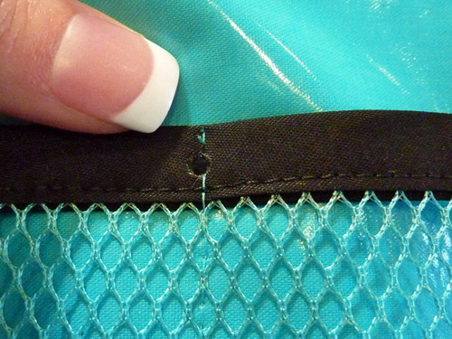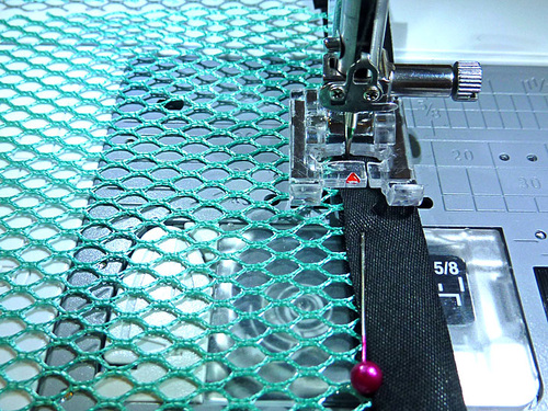 - Edgestitch across each mesh panel through all the layers. Go slowly and carefully, making sure you are catching the front and back of the binding in this one seam.