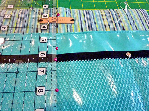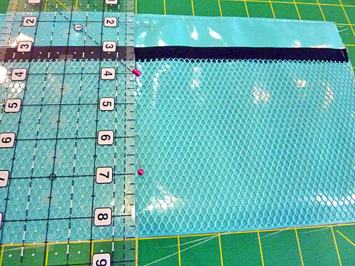 NOTE: The laminate and mesh is tricky to mark with a fabric pen or pencil. We used, and recommend, pins to mark.