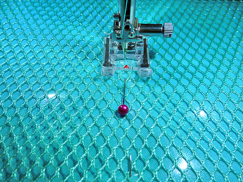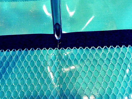 - Re-thread the machine with thread to best match the laminate and mesh in the top and bobbin but keep the slightly lengthened stitch.
