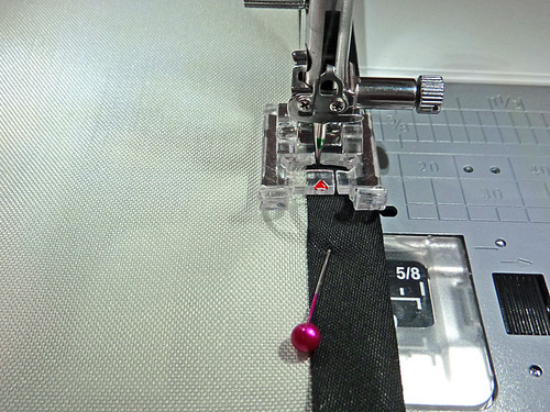 - Edgestitch across each pocket panel through all the layers. Go slowly and carefully, making sure you are catching the front and back of the binding in this one seam.