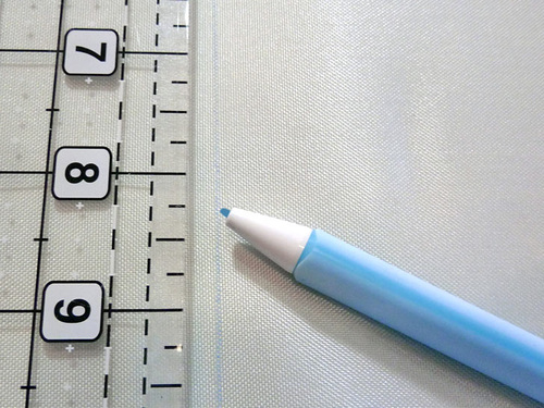 - As you did on the front, put in all your pocket division guide lines. The rip stop is easier to mark, so we drew in our lines with a fabric pen. You can follow our divisions or create your own unique spacing.