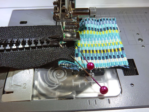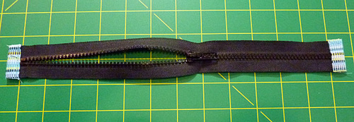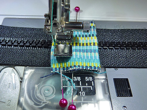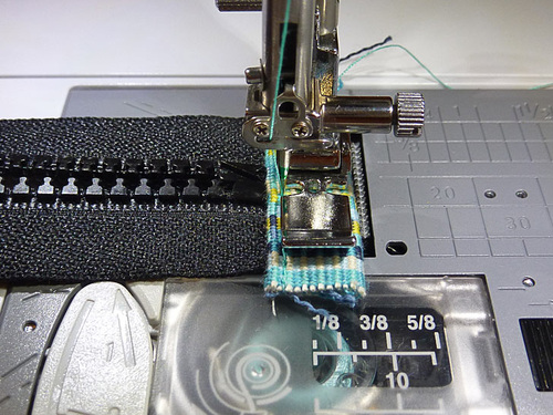 - Re-thread if necessary and edgestitch along the zipper teeth on either side on the zipper to hold the fabric layers together.
