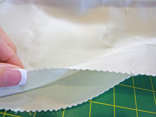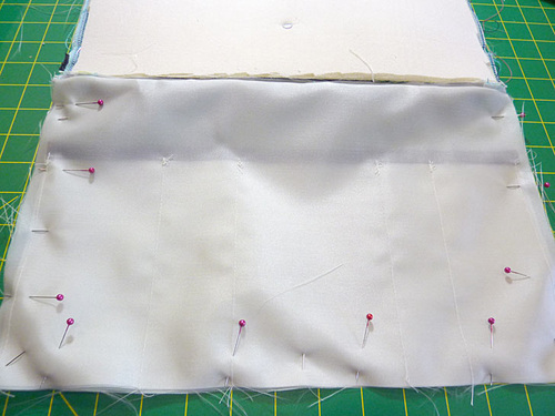 - The top raw edge of the lining panel should be aligned with the other layers. Pin well.