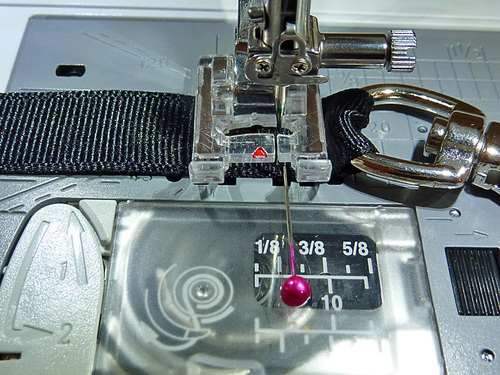- Stitch the across the ribbon through all the layers to secure the Swivel Hook.