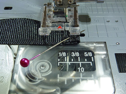 - Re-thread the machine with thread to best match the bias tape in the top and bobbin but keep the slightly lengthened stitch. Switch back to a standard presser foot.