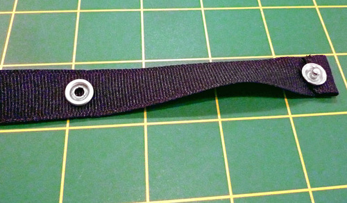 - Using the Snap Pliers, insert one half of the snap at the hemmed end of the ribbon – right over the hem.