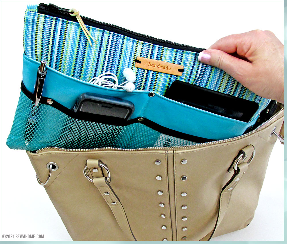This organizer is a perfect option for your everyday bags, but as shown in our photos here, it’s also great for packing toiletries for travel, keeping office supplies in your briefcase, or filling with sewing notions for classes and retreats.