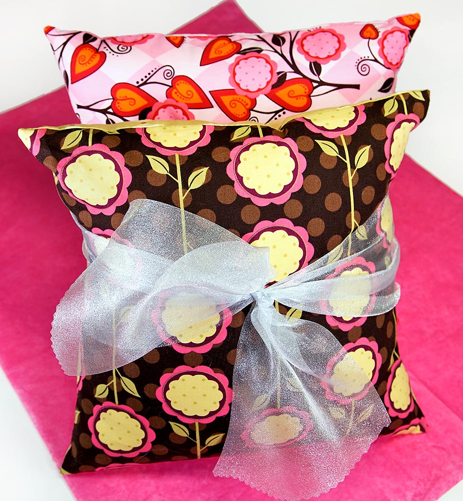 A great gift just for mom! These are so pretty and very quick to make. Any new mom would love a couple of soft, not-too-big pillows in coordinated nursery colors to prop up an arm or her feet while she feeds baby.