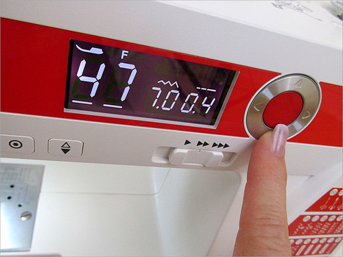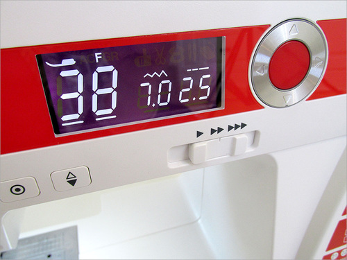 A refinement we spotted immediately on the Janome DC2015 was the larger LED screen, which is quick and easy to control with the touch-ring. Use one finger to click through the stitch selections and adjust length and width.