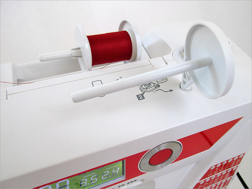 Setting up for double-needle sewing is super easy, and the secondary spool pin is standard.