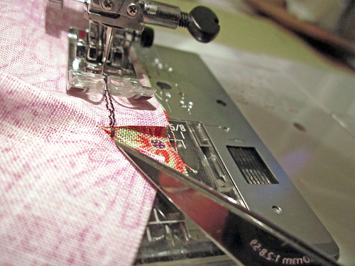 22. Pull the flange away from the pillow front and place just the flange ends back under the needle