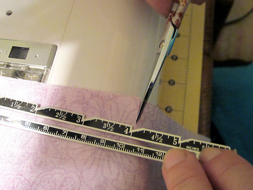 3. You need to snip the unstitched edge of the flange ½” from the corners to match up to snips on the sewn edges. First snip the top to match.