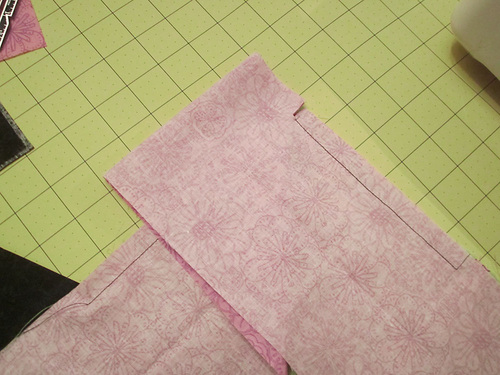 3. Stitch together, using a ½” seam allowance. Press the seams open and flat.