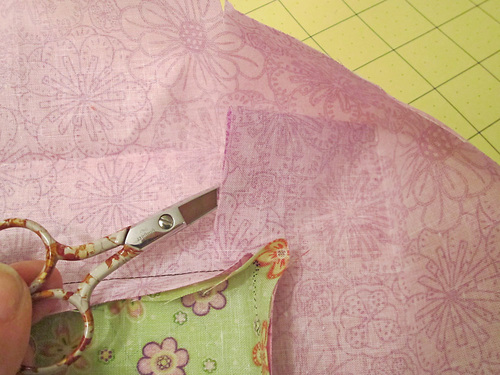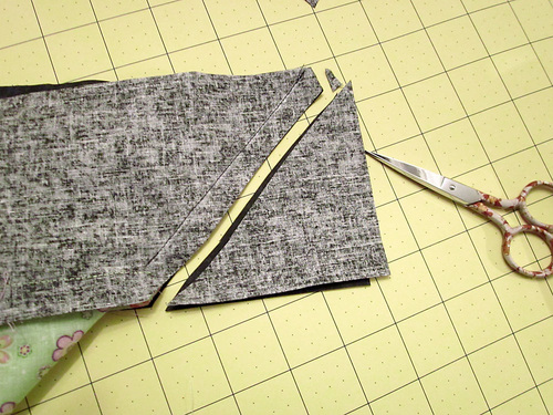 11. Trim the excess fabric back to a ½” seam allowance and clip the top corner.