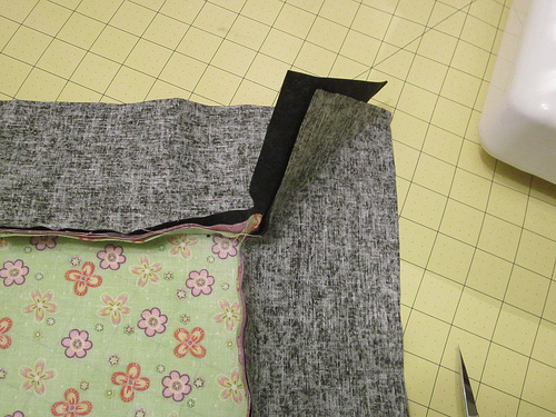 10. Repeat this process to form each of the four corners. Then repeat the whole shootin’ match to attach and miter the second inner flange to the second pillow front.