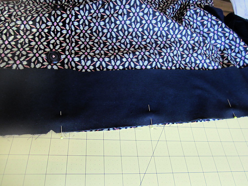 8. Take both finished panels and overlap them so the hems align. The buttonholes should be on top; the plain hem on the bottom.