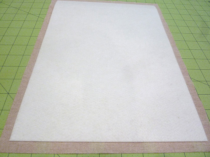 - Center the interfacing on the wrong side of each fabric piece so there is ½” of fabric showing beyond all edges of the interfacing.