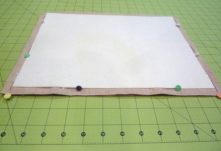 - Press down the top raw edge ½” all the way around. It will cleanly fold down along the top edge of the interfacing.
