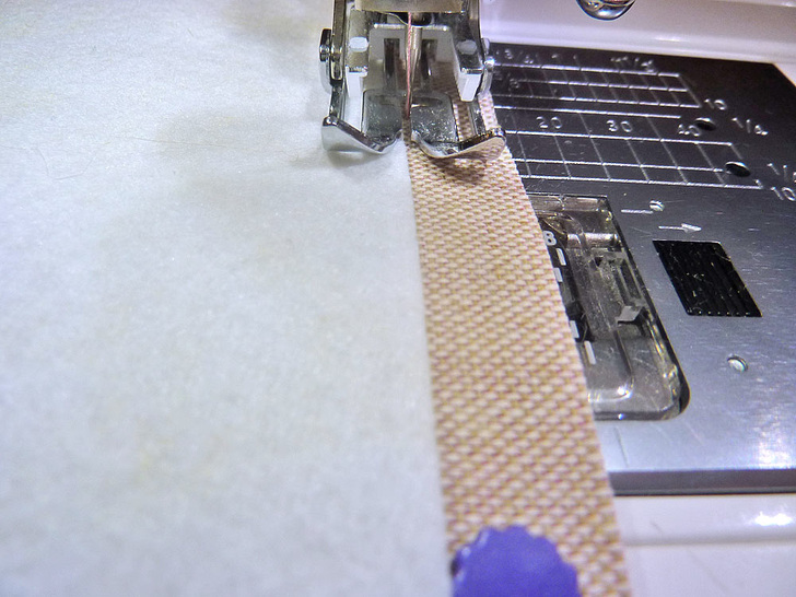 - Slide the plastic canvas back down until it butts up against this sewn sewn. Return to your machine and stitch a second seam just inside the first and through the plastic canvas, securing it in place and keeping it snug against the ½” seam.