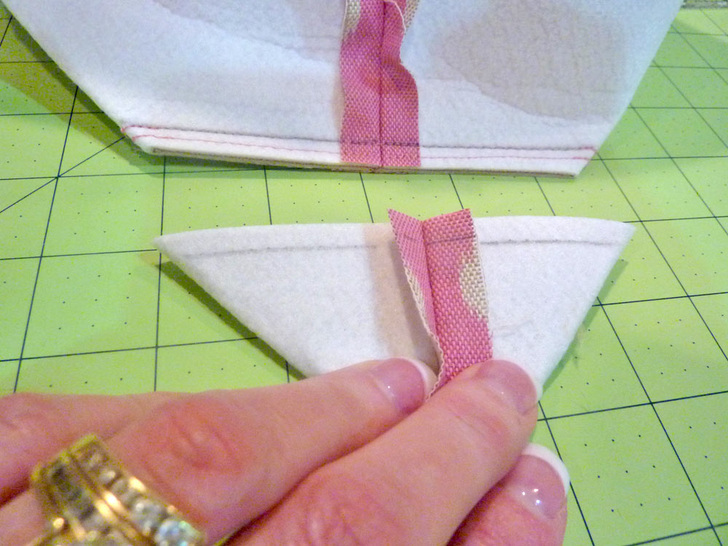 - Using a ½” seam allowance, stitch both sides and across the bottom, pivoting at the corners.