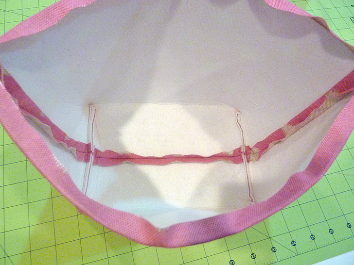 - Find the two interior panels and place them right sides together. Pin in place along both sides and across the bottom.