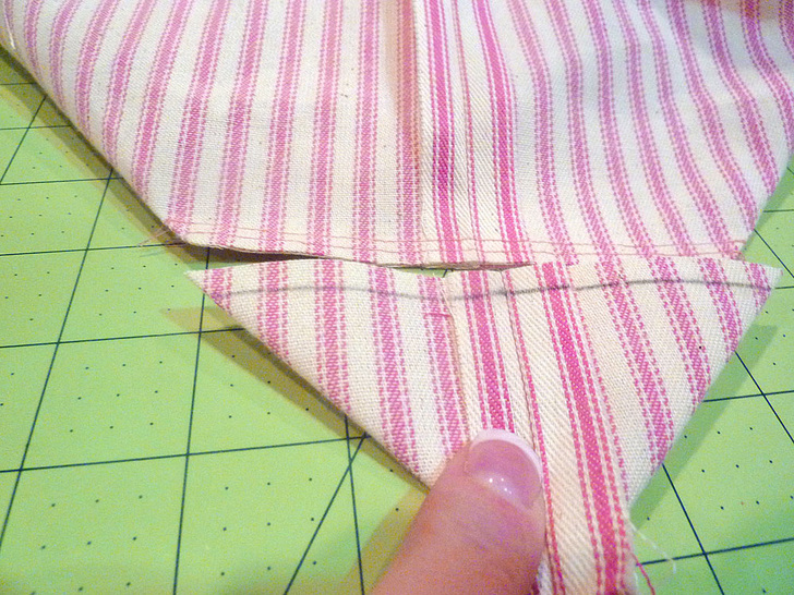 - The next step is to box the bottom corners. To do this, pinch the corners, matching up the side and bottom seams.