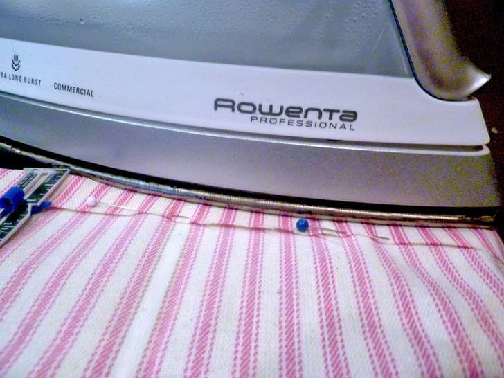 - With the lining still wrong side out, turn down the top raw edge ⅞” all the way around. Pin and press in place.