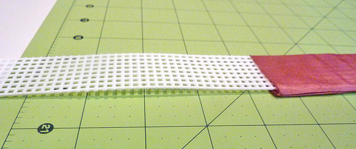 - Find the strip of plastic canvas. Insert it into the taffeta tube.