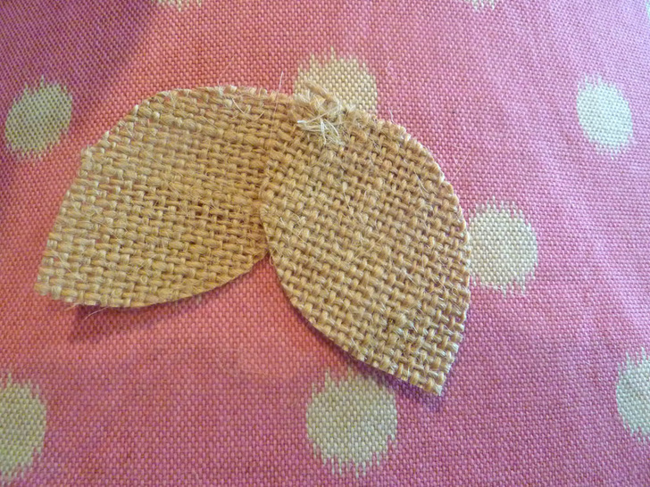 - Then, create the two roses and stitch each in place over the leaves – one center front and one center back.