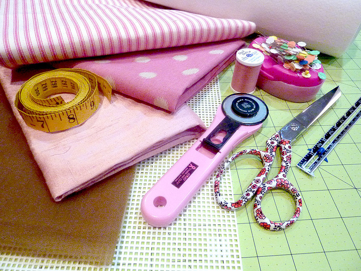 - ½ yard of 44″+ wide cotton fabric for the basket’s lining; we originally used 44″ Ticking in Pink Stripe