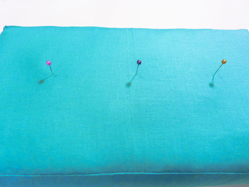 - You need a set of matching marks on the opposite side of the cushion.