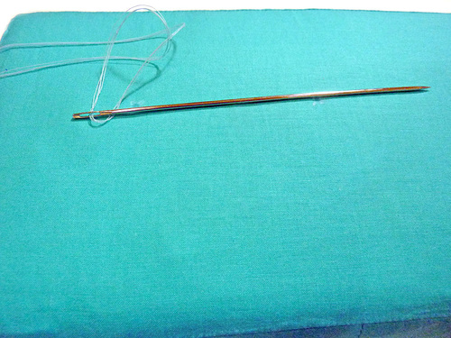 - Double (at least) the thread and pull it through the needle, but do not knot the ends.