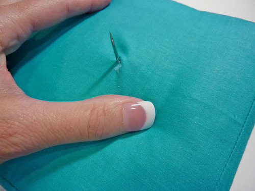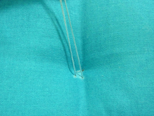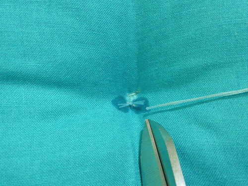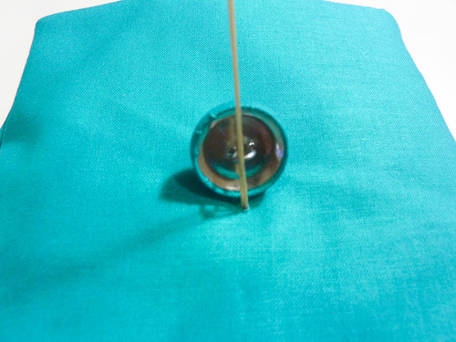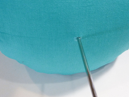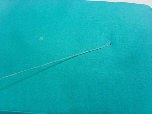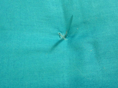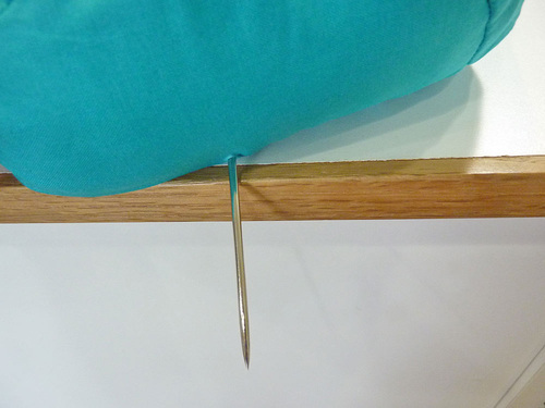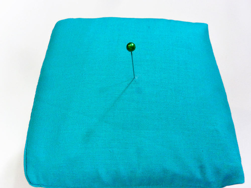 - Insert the needle through the cushion at your marked point.