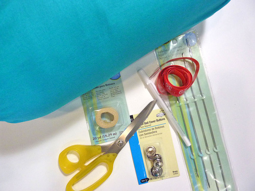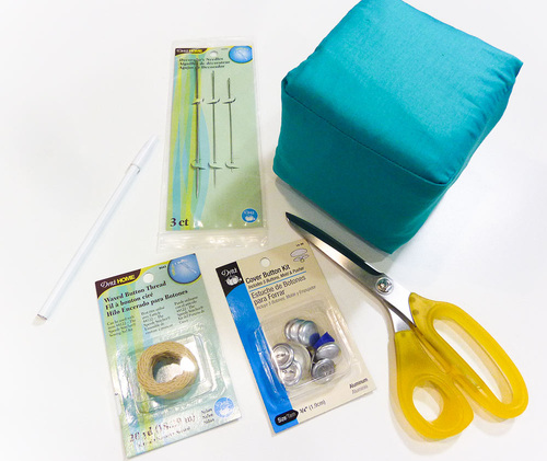- Gather up your materials. As above with the standard button tufting, the thread itself will be covered by the buttons so we strongly recommend the Dritz® waxed thread. Not only is it best in terms of strength, its waxed surface allows it to slide more easily through the pillow form or filler. This characteristic is very important when you are pulling thread across a longer than normal distance.