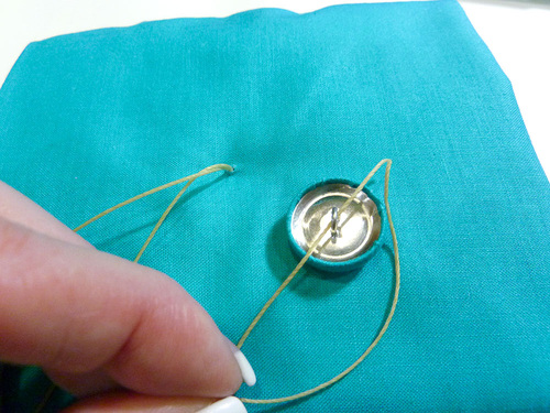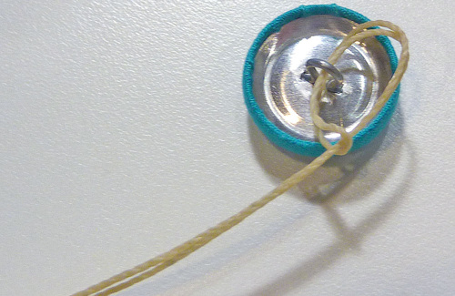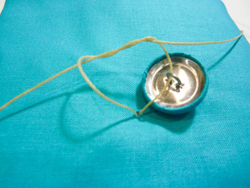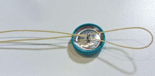 - Double the thread and insert the looped end through the shank of the covered button.