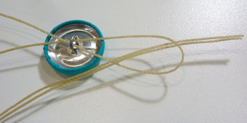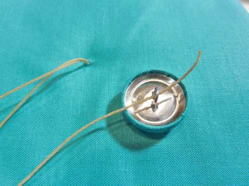 - Trim the ends of the waxed thread so they too disappear under the covered button.