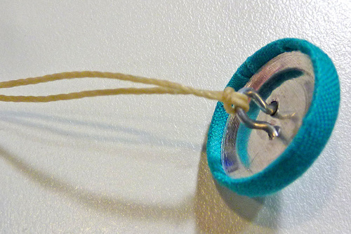 - Once you come out the opposite end, attach the second covered button in the same manner as above.