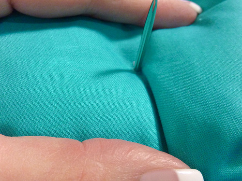 - Repeat this process at each of your tufting marks. We used a contrasting thread to best show our stitching for the tutorial. In most instances, we would recommend a matching thread for this technique.
