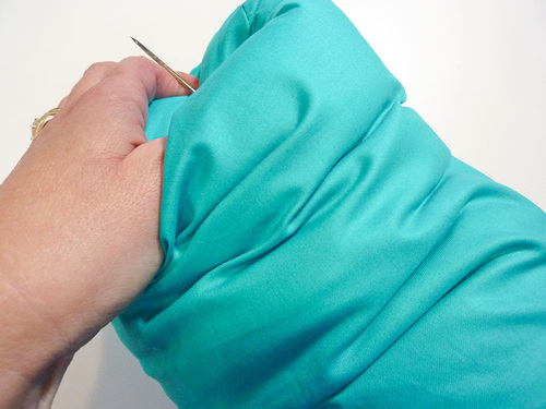 - Insert the needle into the exact center at one end of the bolster.