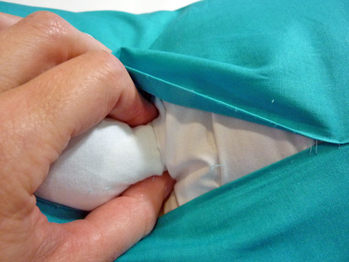 - Another option is to leave the seam of your pillow cover open during the tufting step so you can reach through and kind of “massage” the needle through the center of the pillow form, working it along its path.