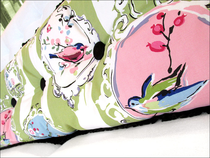 Button tufting follows the same basic process as stitch tufting, but the thread is covered on one or both sides with buttons — usually covered buttons in fabric that matches or coordinates with the base fabric.