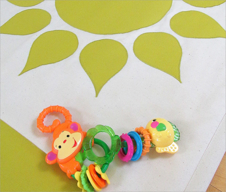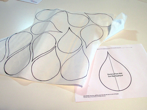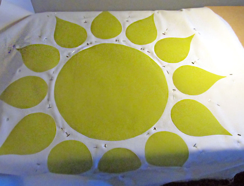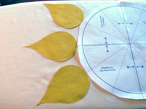 - Carefully cut out each appliqué shape: the circle and all twelve teardrop rays. Set aside.