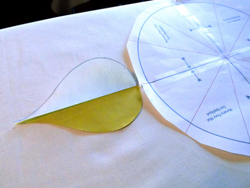 - In addition, cut out the Sun Ray Appliqué, then cut this paper teardrop ray in half so you have a half template with which to work.