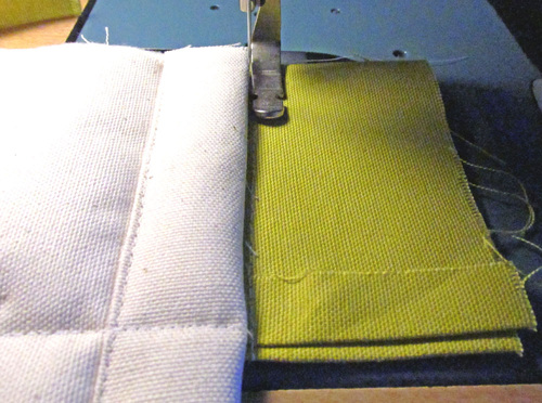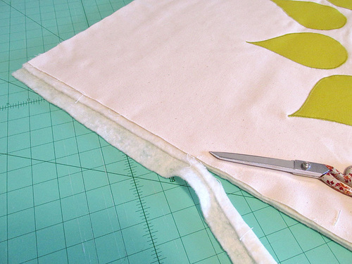 - Trim the batting (both layers) flush with the fabric panels (both layers) on all four sides.