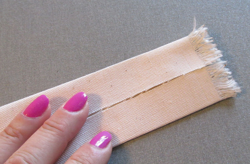 - Fold the strip wrong sides together, but don’t exactly match the folded edges. One side should be just a bit shorter than the other as shown in the photo below – it’s only about an ⅛”. Press the fold.