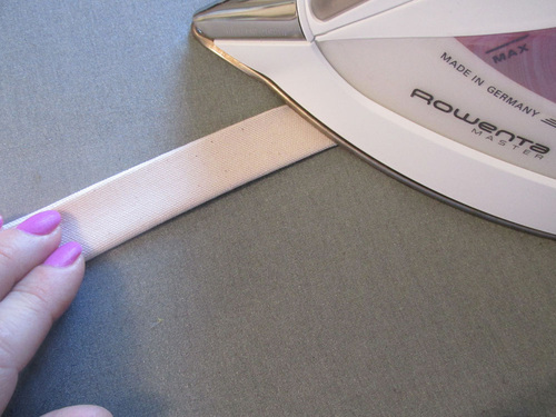 - Find the two 9″ x 34″ strips. Fold back the 34″ sides ½” and press well.