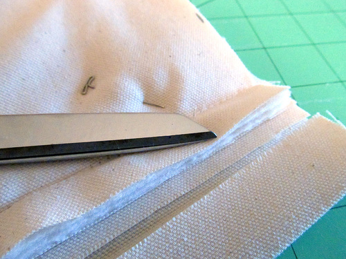 - Trim back the seam allowances to approximately ½” and clip the corners.